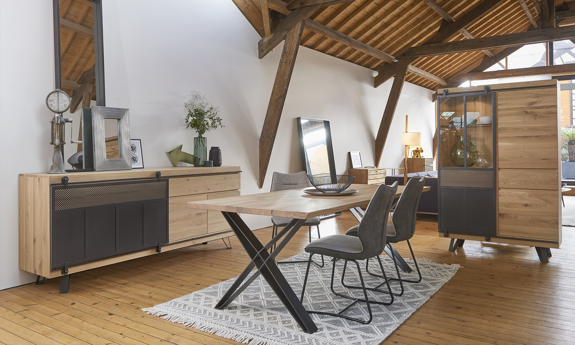 - Enfilade 1 porte métal coulissante 2 portes battantes, 1 tiroir L.225 H.94 P.52 cm